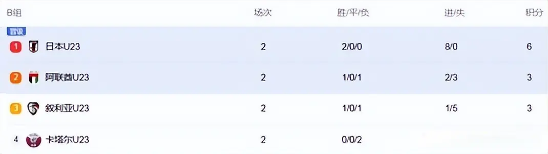 前两轮事后,B组积分榜:日本队两战全胜6分领跑欧洲杯足球体育信息,阿联酋、叙利亚同积3分,卡塔尔两战全败0分垫底。末轮,卡塔尔对阵日本队,阿联酋迎战叙利亚,阿联酋和叙利亚必有一支球队会拿分,因此卡塔尔队即便驯服日本队也无法踏进前二,这意味着他们一经提前一轮小组出局!