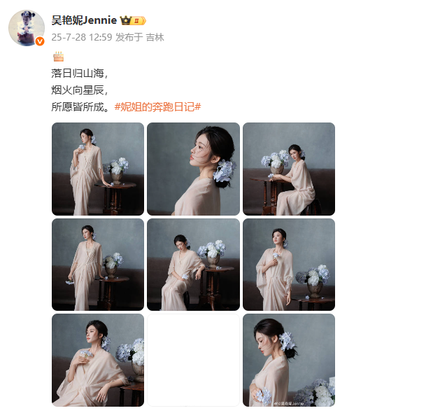 就在几天前,7月28日12时59分,吴艳妮在个东说念主搪塞平台晒照庆祝28岁诞辰,并配文“落日归山海,人烟向星辰,所愿王人所成”。吴艳妮还称:“愿望等于我的发送时辰。”