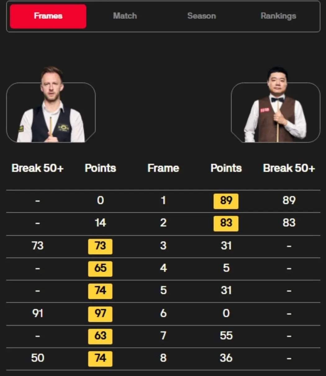 第8局,丁俊晖无间出现荒唐,打丢粗浅的红球,36-74落败。最终,丁俊晖连输6局,以2-6的比分输给了特鲁姆普。两东谈主最近的4次交锋中,丁俊晖齐是输球的一方。
