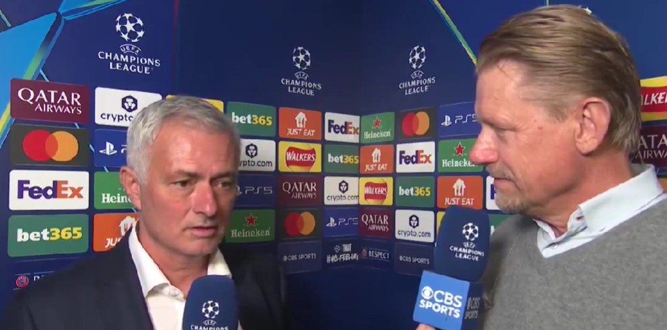 在客场0-1不敌切尔西的赛后体育录像/图片,本菲卡主帅穆里尼奥接管了CBS sports的采访。