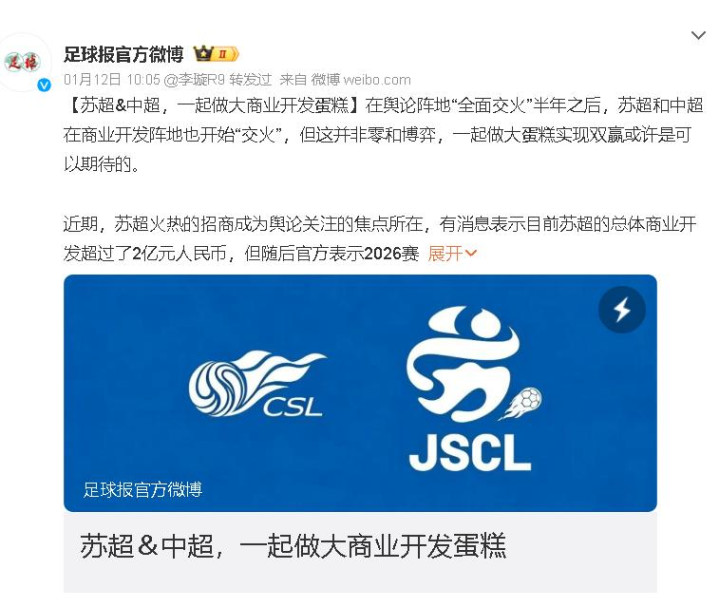 当苏超招商火到出圈,中超却堕入“被比拟”的张皇,当苏超业余联赛齐能狂揽2亿辅助,中超这种亚洲高规格联赛的脸往那儿搁?但别急着骂街,这波“生意交火”偶合撕开了中国足球最该觉醒的真相:联赛之间从不是你死我活的敌东说念主,把蛋糕作念大才是活路!真的如斯吗?