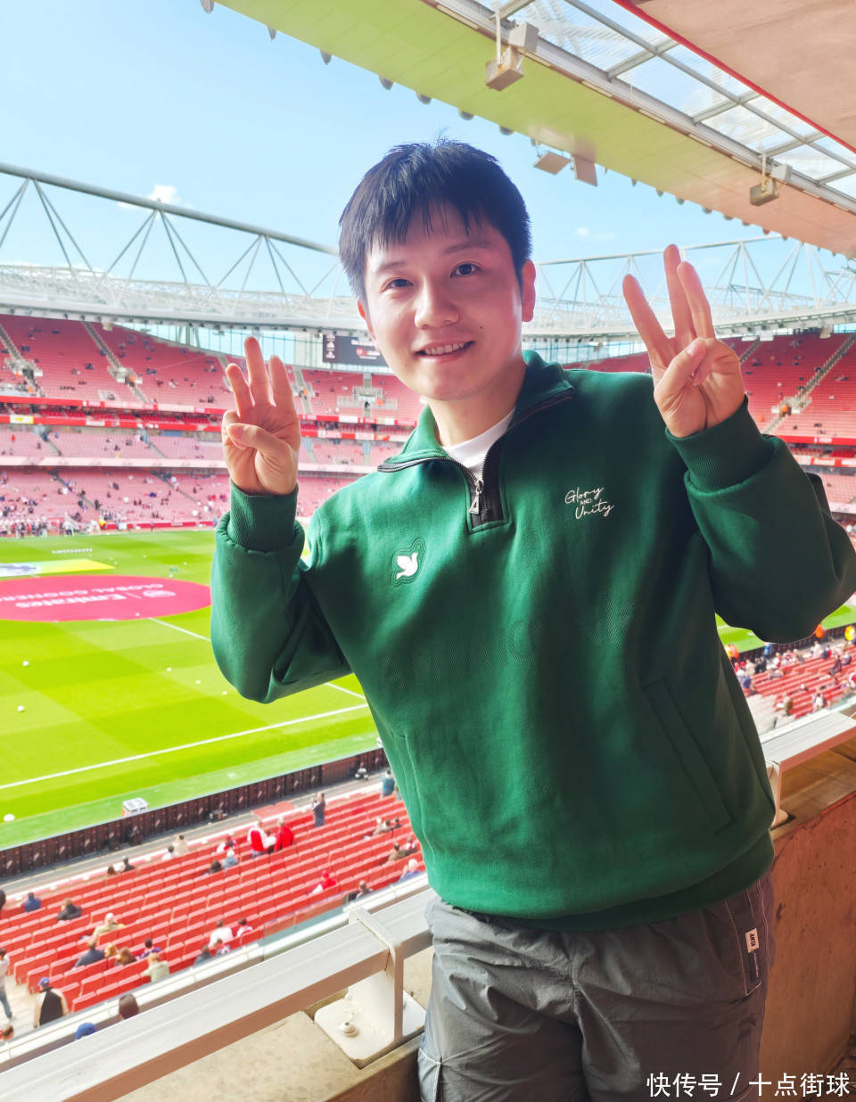 樊振东的伦敦之行并非全是闲荡,9月21日,他受英超官方邀请,在伦敦酋长球场不雅看了阿森纳对阵曼城的焦点战,这场比赛历程跌宕转动:曼城由哈兰德先拔头筹,阿森纳则在补时阶段由马丁内利吊射绝平,比赛规模后,樊振东难掩忻悦之情,在个东谈主草率平台共享了他的不雅赛感受,他感触谈,足球的魔力远不啻于输赢,比赛自身所蕴含的心扉与不雅赏性足以令东谈主退让