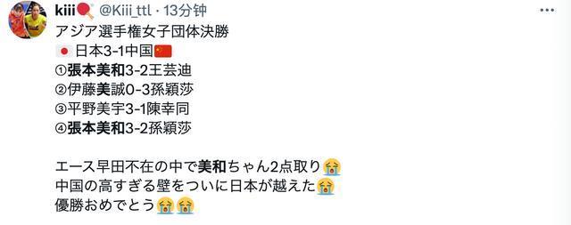 赛后,多家日本媒体在报谈中重心提到了张本好意思和,示意在早田希娜不在的情况下,张本好意思和拿到了2分,匡助日本队翻越了中国这座高墙。张本智和则是在外交媒体上发文,赞叹妹妹张本好意思和体育赛事直播,庆祝她在比赛中打败王艺迪和孙颖莎, 并最终夺冠。毫无疑问,现时对国乒女队恫吓最大的并非早田希娜,而是张本好意思和,何况张本好意思和还很年青,国乒需要有所准备了。