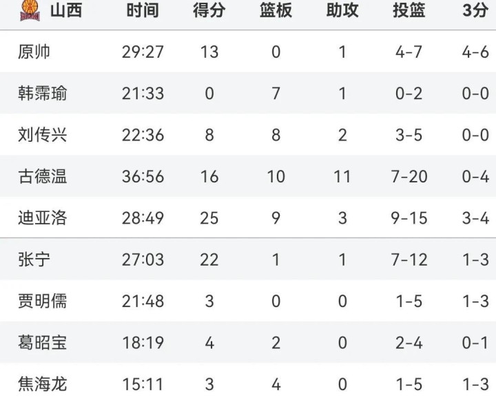 此外,一场引东说念主关心的比赛是浙江广厦对阵山西。