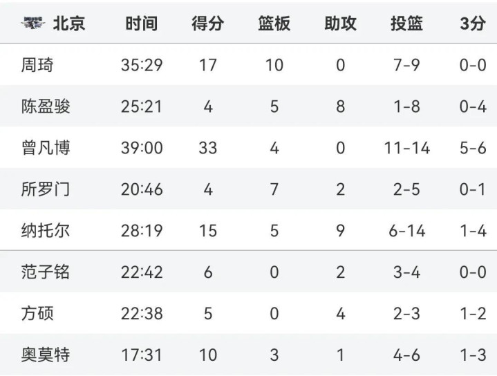 年青球员曾凡博也不绝了此前的考究气象,成为北京队取胜的要津东说念主物。
