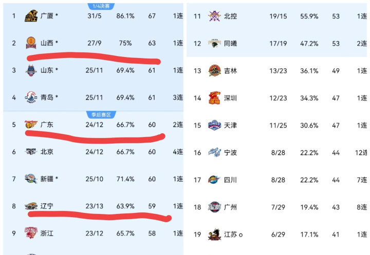 而名次方面,广东队凭借这场大捷名次上涨,辽宁队则下落,其他球队的名次也发生了变化。
